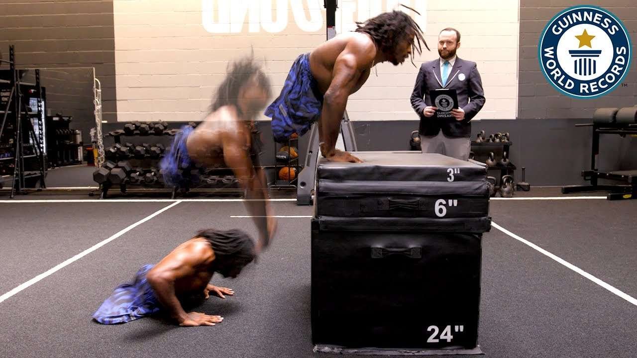 Here, he goes for the records of most diamonds push ups in three minutes and the highest box jump using the hands.