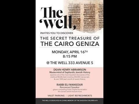 The Secret Treasure of the Cairo Geniza: Monday April 16 at The WELL, 333 Avenue S, Brooklyn NY.