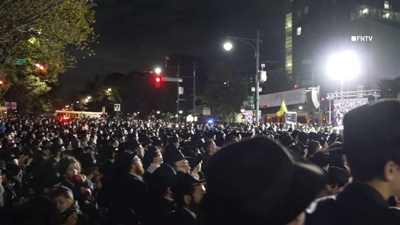 October 9 2023 BROOKLYN , New York – Thousands of Brooklyn Jews gathered in prayer at Chabat-Lubavitch for vigil for Jewish victims of attack by Hamas in Israel.